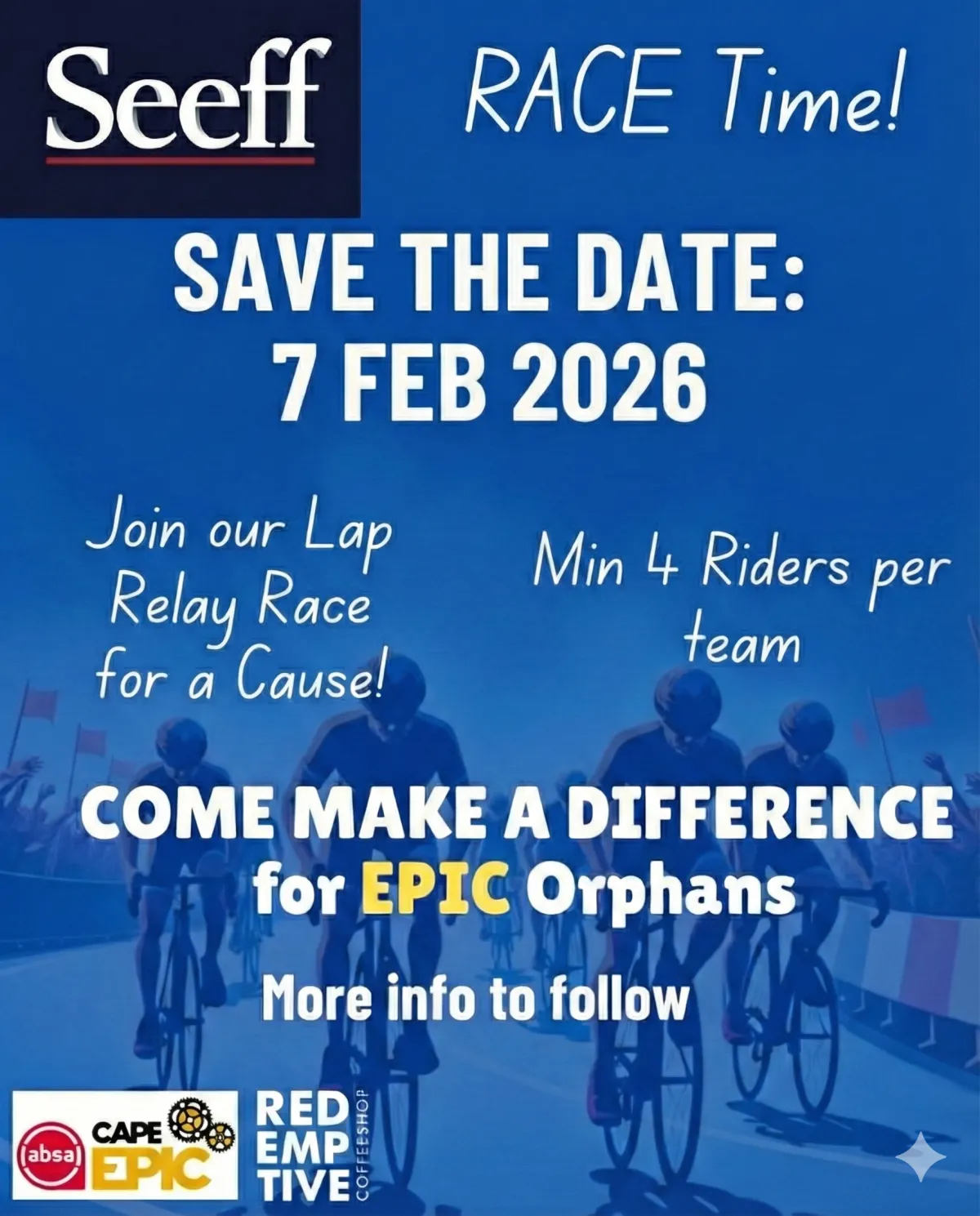 This year, Renier and Maree — together with Billy & Anne-Lize Fick from Seeff — are turning their passion for cycling into a mission of hope. Through the Seeff EPIC for Orphans Awareness Campaign, funds will be raised to help upgrade facilities and provide care and support for orphaned children. With the support of Secunda’s vibrant cycling community, we believe we can bring real change to the lives of these children and build a stronger, united community.